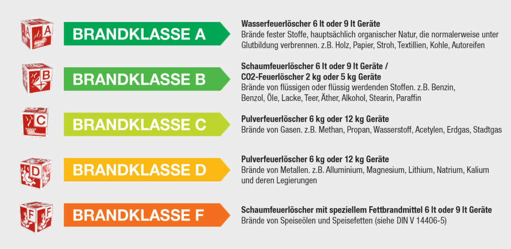Mit der EN 2 erfolgt eine Einteilung der verschiedenen Feuerlöscher in Brandklassen. Jede Brandklasse repräsentiert dabei bestimmte Stoffeigenschaften. Die EN 2 gibt damit wesentliche Anhaltspunkte, welche Feuerlöscher bei bestimmten Objekten eingesetzt werden dürfen.